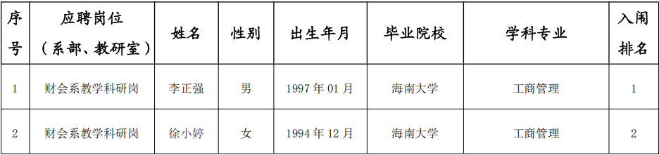 根据《景德镇陶瓷大学2025年高层次人才招聘公告》精神,管理与经济学院开展了2025年第二批博士人才专业面试考核,现将入闱体检(心理测试)人员名单公布如下: