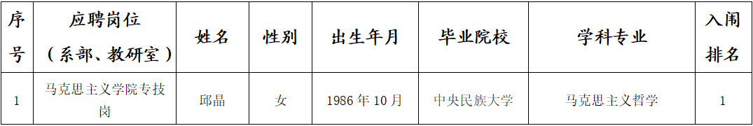 根据《景德镇陶瓷大学2025年高层次人才招聘公告》精神,马克思主义学院开展了2025年第二批博士人才专业面试考核,现将入闱体检(心理测试)人员名单公布如下: